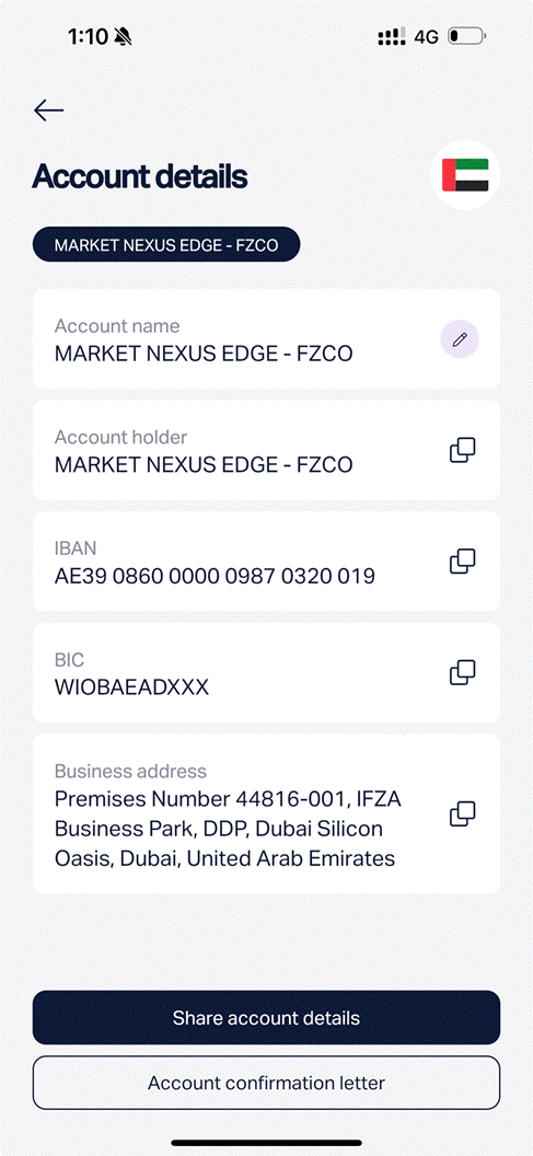 Account holder MARKET NEXUS EDGE – FZCO